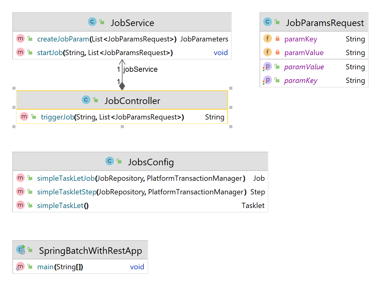 1. Jobs would be created in JobsConfig.java and available as Bean